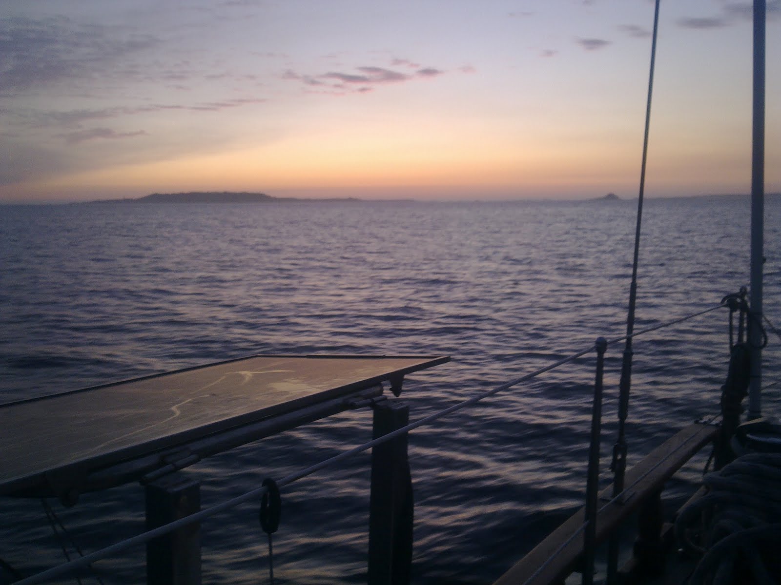 Cae a tarde e con ela o vento. Tan so izamos xénova pero pronto temos que recollelo. Queda por diante unha travesía a motor perseguindo un sol que se vai agochando por detrás de Salvora.
